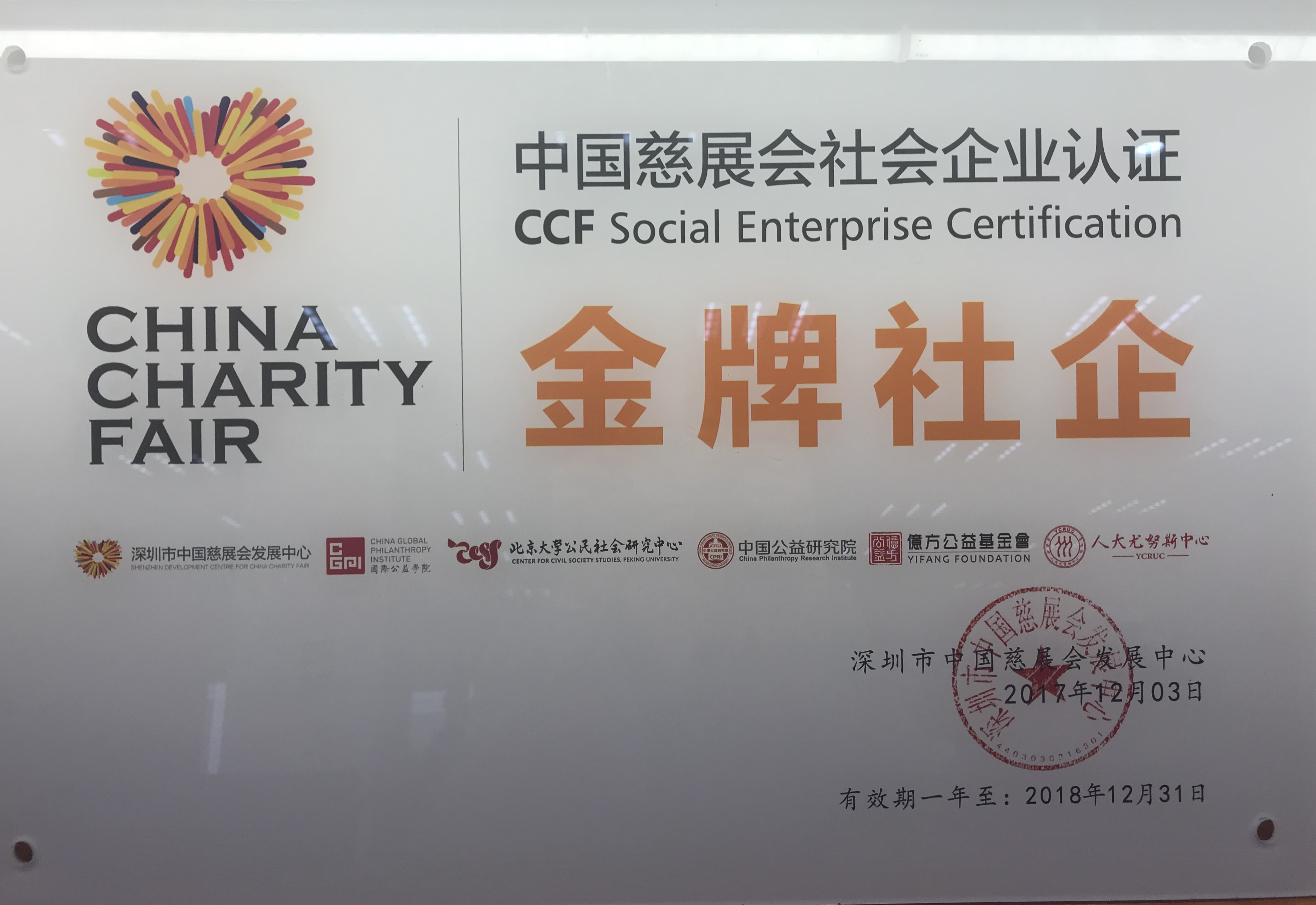 中国慈展会社会企业认证金牌社企