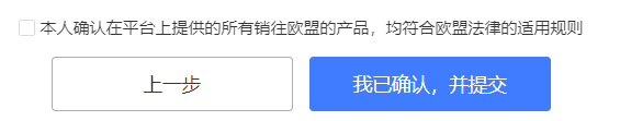 以TEMU为例,其在商家入驻环节便设置了合规确认,申请入驻时需勾选“本人确认在平台上提供的所有销往欧盟的产品,均符合欧盟法律的适用规则”——而EAA是欧盟已经生效的、强制性法律。